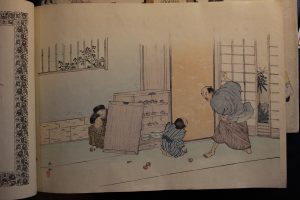 édition de ces Fables choisies. Superbe publication ornée de 30 figures gravées sur bois en couleurs (dont les deux couvertures) suivant la technique japonaise. « Ces illustrations réprésentent réellement des scènes de la vie du Japon aussi bien que si les fabulistes eût été japonais » (Le Japonisme. Paris, Musées Nationaux, 1988, p. 112). Coins un peu émoussés, quelques départs de fentes aux plis en gouttière, couverture du second volume plus nettement salie et fendue en gouttière. Malgré tout, bon exemplaire en brochage original à la japonaise. Carteret, V, 79. Monod, 4756 (pour l'édition in-8)
