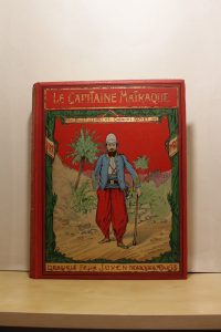 plat du cartonnage représente le héros en tenue de zouave dans un paysage marocain encadré de deux arbres aux branches portant deux écriteaux "Pax".En marge de sa série des Voyages excentriques, Paul d'Ivoi, associé au colonel Royet, écrivit des romans populaires sensationnels, basés sur une actualité légèrement extrapolée. Pour Pierre Versins (Encyclopédie de l'utopie et de la science fiction, 1972), c'est le chef-d'oeuvre de l'auteur.Cartonnage très légèrement frotté, plus particulièrement aux coins, intérieur frais