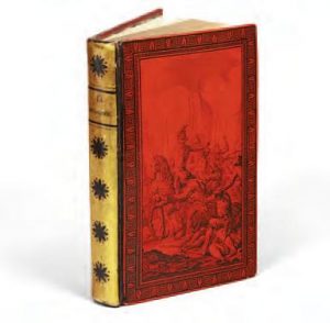 orné, roulette dorée intérieure, tranches dorées (Tessier, Relieur Doreur). Manque à la Bibliothèque nationale. Un titre gravé, et 10 planches dessinées par Louis Lafitte (1770-1828) et interprétées sur cuivre par Parfait augrand, dit Parfait (1782-18 ?). celles-ci présentent, dans des médaillons encadrés d’ornements, apollon et les 9 muses, chacune avec l’attribut de son art. Louis Lafitte, élève du peintre Jean-Baptiste regnault (1754-1829), reçoit le Premier Prix de rome en 1791. À son retour de rome, il oriente son travail vers le dessin et la décoration. après 1800, il est très lié au consulat puis à l’empire, travaillant avec Percier à la décoration du château de Malmaison. Il expose plusieurs tableaux dont les sujets font tous référence à l’histoire révolutionnaire ou aux débuts de l’empire. en 1810, il décora l’arc de triomphe provisoire de l’étoile pour les cérémonies du mariage de Napoléon et de Marie-Louise. Il conçoit de nombreux modèles pour la manufacture de Sèvres. Bien que son style, dans le goût pompéien, soit très caractéristique de celui de l’empire, il travaillera ensuite, sous Louis XVIII, à l’église des Invalides créera les modèles d’orfèvrerie et participera au Livre du sacre de charles X. Bel exemplaire relié par Tessier, avec son étiquette à l’adresse de la rue de la Harpe, n°45. relieur et doreur, Tessier débuta sa carrière en succédant à Jean-charles Lemonier, et fit de son atelier celui des institutions officielles, jusqu’aux années 1840. Son nom reste attaché à la Description de l’Égypte, ouvrage pour lequel il créa des fers spéciaux et différents modèles de reliures. Les serpentes sont ici conservées. Dimensions : 255 x 200 mm. Exposition : culot (P.), Relieurs et reliures décorées en France aux époques Directoire et Empire, Bibliotheca Wittockiana, 16 sept. 2000-10 févr. 2001, Bruxelles, n°5, avec reproduction. Worldcat, n°78926363 (édition de 1806) ; Grand-carteret (J.), Les Almanachs français, p. 396 (uniquement l’édition de 1807) ; allégret (M.), Revue du Souvenir napoléonien, n°439, février-mars 2002, p. 63 ; culot (P.), Relieurs et reliures décorées en France à l’époque romantique, Bibliotheca Wittockiana, 1995, p. 555 (notice sur Tessier).