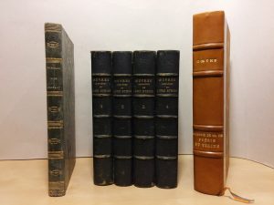 "Au chapître XXXII — ultérieurement XXXIII — une page entière évoquant Grégoire XVI, le Pape régnant avait été remplacée par des points, par Sainte-Beuve ou sur ses conseils" (Louis Le Guillou, En Français dans le texte). Ex-libris manuscrit R[obert] S[chuman] (n° 222 de sa vente en octobre 1965). Rousseurs. En français dans le texte, 251. Vicaire, IV, 1091. JOINTS : - BYRON. Œuvres complètes de Lord Byron. traduites par Benjamin Laroche. Paris, Hachette et Cie, 1863 ; 4 vol. in-12, demi-chagrin vert mousse, dos à nerfs, [Rel. de l'époque]. Ex-libris Alfred Michel Angot. Reliures un peu frottées, quelques rousseurs. - GŒTHE. Souvenirs de ma vie. Poésie et vérité. Paris, Aubier, Éd. Montaigne,1941 ; in-8, demi-basane fauve, dos à nerfs, tête dorée, couverture et dos. Édition originale de la traduction française. Exemplaire sur papier vélin d'Alfa
