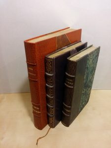 Orné de dessins de Maxime Dethomas gravés sur bois par G. Aubert (le frontispice en couleurs). L'un des 935 exemplaires numérotés sur papier de Rives. Très bel exemplaire.— JOINTS : - PEYREFITTE (Roger). Les Amitiés particulières. Marseille, Jean Vigneau, 1943 ; pet. in-4 carré, demi-maroquin rouille à coins, liseré doré, dos à nerfs, tête dorée, non rogné, couverture et dos conservés, [A. & R. Maylander], infime épidermure à un coin. Édition originale. L'un des exemplaires numérotés sur papier d'édition. Très bel exemplaire. - GREEN (Julien). Léviathan. Paris, Librairie Plon, 1929 ; in-8, demi-maroquin vert mousse, dos à nerfs, tête dorée, non rogné, couverture et dos, [Hauttecœur Rel. Dor.], dos un peu passé. Édition originale. L'un des exemplaires numérotés sur papier Alfa.