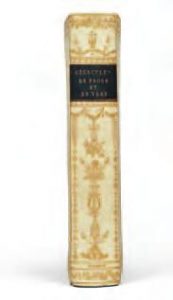 chiffre entrelacé [Ml] plusieurs fois répété, sur un fond de semés d’abeilles et d’étoiles, doublure et gardes de tabis bleu céleste, roulette intérieure dorée, tranches dorées (Rel. P. Lefebvre). Seconde édition, publiée la même année que l’originale. Un poème héroïque né de la légende du roi arthur à l’heure des grandes campagnes napoléoniennes. Secrétaire de charles-François Lebrun (1739-1834) pendant le consulat, auguste creuzé de Lesser (1771-1839) fit carrière dans l’administration sous l’empire et la restauration qui le mena au poste de préfet et au titre de baron. Parallèlement, il s’adonna à la littérature et publia des Voyages en Italie et en Sicile (1806) - qui, dit-on, déplurent à Napoléon par son manque de goût pour l’antiquité -, de nombreuses comédies et poèmes de circonstance. on considère que la publication du Cid, romances espagnoles, imitées en romances françaises et surtout de sa traduction des Brigands de Schiller contribuèrent à faire connaître en France les lettres étrangères. Quant aux Chevaliers de la Table ronde, ils s’inscrivent pleinement dans la tradition de la légende arthurienne, autour du thème de la fraternité chevaleresque. au moment où, rassemblées autour de Napoléon, les troupes impériales défient l’europe et particulièrement l’angleterre et la russie, il n’est pas indifférent que ce genre ait connu une vogue immense. Un frontispice gravé par François Louis couché (1782-1849), dit couché fils, évoquant Tristan et Yseult. exemplaire relié par Lefebvre au chiffre entrelacé de Marie-Louise, alors impératrice des Français, et décoré des attributs de l’empire. en 1810, Napoléon a épousé l’archiduchesse Marie-Louise d’autriche (1791-1847) afin de sceller plus étroitement l’alliance de la France avec l’autriche et dans le souci d’avoir ce fils que Joséphine ne lui donne pas et qui pourra fonder sa dynastie. Le 20 mars 1811, elle met au monde l’héritier tant attendu, Napoléon François Bonaparte, qui reçoit à sa naissance le titre de roi de rome. Un exemplaire est mentionné au catalogue, Die Bibliothek Napoleons I. und der Kaiserin Marie Louise, de format in-12, frappé des grandes armes de Marie-Louise. Dimensions : 132 x 80 mm.