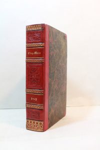 ébarbé, [Rel. de l'époque], sou étui moderne. Édition originale du premier roman historique français.Inspiré par sa lecture à quatorze ans des Mémoires du cardinal de Retz, Vigny fait revivre ici l'une des plus célèbres conspirations de l'histoire de France, celle dirigée par Cinq-Mars contre Richelieu.Envoi autographe de Vigny sur le premier feuillet de faux-titre. L'exemplaire a par ailleurs été enrichi, depuis la vente Lucien-Graux, de documents autographes réunis sous chemise à rabats :- 2 lettres autographes signées d'Alfred de Vigny, datées de 1858, à l'éditeur Bourdilliat, à propos de la douzième édition de Cinq-Mars qui doit contenir deux fac-similés : « J'attends les fac-similés des deux lettres de Cinq-Mars et de Richelieu et le volume de l'édition de 1833 (p. m. Ch. Gosselin) que j'ai donné pour modèle [^]. »- Une lettre signée du cardinal de Richelieu à M. de Poyane, datée de mars 1627, 1 p. in-folio, avec deux petits cachets de cire aux armes du cardinal, intacts.- Un reçu autographe signé de Charlotte d'Effiat, sœur de Cinq-Mars, pour la demi-année (1674) de la pension que lui servait le duc de Mazarin, son neveu.- Une quittance autographe signée de Charlotte Chemerault (Madame de la Basinière), sur parchemin, pour sa pension, datée de 1662.De la Bibliothèque du Docteur Lucien-Graux, avec son ex-libris (n° 130, 4e partie, 1957).Très plaisant exemplaire, lavé, en reliure strictement contemporaine.Carteret, II, 452. Vicaire, VII, 1053