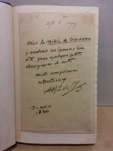 édition originale. Très bel exemplaire, lavé, dans sa demi-reliure romantique, enrichi d'une lettre autographe signée de Vigny à Buloz (23 mars 1834), lui adressant le manuscrit de la Veillée de Vincennes, et d'une lettre autographe d'Antony Deschamps à Vigny : « Admirable, mon cher Alfred, votre Laurette m'a fait pleurer [^] ». Vicaire, VII, 1062. Carteret, II, 458