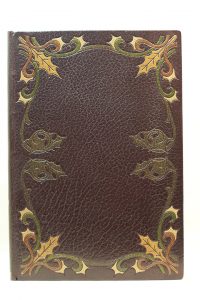 Exemplaire unique VILLIERS DE L'ISLE-ADAM (Auguste comte de). Akëdysséril. Paris, M. de Brunhoff, 1886 ; in-4, maroquin tête de nègre, large encadrement d'un décor floral de maroquin olive, brun, vert mousse, vert sombre et ventre de biche...