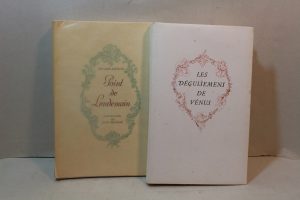 enrichi d'une suite de 5 planches refusées, coloriées. Bel exemplaire.— JOINT : PARNY (Évariste). Les Déguisemens de Vénus. Illustrés de gravures au burin par Blanche Quercy de Fronsac. Paris, aux dépens d'un groupe d'amateurs, 1952 ; in-8 en ff., couverture imprimée rempliée, chemise et étui. Belles gravures dans le texte au burin de Blanche Quercy de Fronsac. L'un des 200 exemplaires numérotés sur papier vélin de Rives. Quelques légères piqûres
