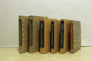ébarbé, [Rel. moderne]. Figures gravées sur bois dans le texte.— JOINTS : - LÆNSBERG (Matthieu). Le Double almanach journalier, pour l'année 1829. Troyes, Me Ve André, 1829 ; même format, même reliure. Figures dans le texte. Très légères rousseurs. - LÆNSBERG (Matthieu). Le Double almanach journalier, pour l'année 1835. Troyes, Baudot, 1835 ; même format, même reliure, couverture et dos conservés. Figures dans le texte. Très légères rousseurs. - LÆNSBERG (Matthieu). Le Double almanach journalier, pour l'année bissextile 1832. Troyes, Baudot, 1832 ; même format (80 x 100 mm), bradel papier dominoté vert, jaune et ocre, pièce de titre en long de chagrin fauve, ébarbé, [Rel. moderne]. Figures dans le texte. Exemplaire bien frais. - LÆNSBERG (Matthieu). Le Double almanach liégeois-journalier, 1849. Troyes, Baudot, 1849 ; même format (80 x 119 mm), bradel papier dominoté vert, jaune et ocre, pièce de titre en long de chagrin marron,, ébarbé, couverture et dos conservés, [Rel. moderne]. Figures dans le texte. Infimes rousseurs. - LÆNSBERG (Matthieu). Le Double almanach journalier, pour l'année 1852. Troyes, Anner-André, 1852 ; même format, même reliure. Figures dans le texte. Infimes rousseurs. Belle réunion de ces rares impressions populaires