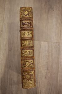 dorés, pièce de titre bordeaux, [Rel. de l'époque], importantes épidermures, mors fendus. Quatrième et dernière édition, rare, de cet important commentaire de cette coutume qui couvre l'ensemble du droit champenois y compris celui des foires. Ex-libris manuscrit ancien découpé dans le blanc du f. de titre. Intérieur frais