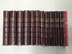 couvertures et dos, [Franz] et un vol. in-8, simili rouge pour l'index. Bel ensemble bien complet des 11 volumes et de l'index par Charles Grolleau.