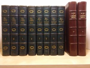 au vert Empire. Grande carte lithographiée, repliée et aquarellée. Des rousseurs.— JOINTS, du même, en reliure uniforme :- L'Empire chinois, faisant suite à l'ouvrage intitulé « Souvenirs d'un voyage dans la Tartarie et le Thibet ». Paris, Gaume frères, 1857 ; 2 vol.Enrichi de la grande carte lithographiée, repliée et aquarellée destiné aux Souvenirs d'un voyage dan la Tartarie [^] ». Rares rousseurs.- Le Christianisme en Chine, en artarie et au Thibet. Paris, Gaume frères, 1857 ; 4 vol.Édition originale. Sans la carte qui manque parfois. Bon exemplaire.Cordier, Sinica, 770. Caillet, 5294. Numa Broc, Asie, 247-249.Evariste Huc (1813-1860) fut voyageur et missionnaire de l'ordre des Lazaristes, il arriva à Lhassa au Tibet en janvier 1846, venant de la chine du nord, après être passé par la Mongolie, Xining et le Qinghai. Il fut le premier occidental à pénétrer dans certaines parties de la Chine.Plaisante réunion des ces ouvrages importants sur l'extrême orient, en reliure uniforme de l'époque.ON JOINT un second exemplaire de L'Empire chinois. Paris, Gaume, 1854 ; 2 vol. in-8, demi-chagrin marron, dos à nerfs, têtes rognées, couvertures conservées.Grande carte gravée sur cuivre aquarellée, repliée. Rares rousseurs