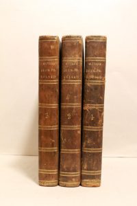 ROLAND (Mme Marie-Jeanne Philipon de). Œuvres de J. M. Ph. Roland, femme de l'ex-ministre de l'intérieur. Paris, Bidault, an VIII [1800] ; 3 vol. in-8, demi-basane marron, dos lisses ornés de filets dorés, [Rel. de l'époque]. Portrait gravé sur...