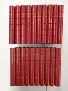 précédés d'une notice par M. Sainte-Beuve. Paris, L. Hachette et Cie, 1856-1858 ; 20 vol. gr. in-8, demi-chagrin écarlate à coins, dos à nerfs, têtes dorées, [David]. Portrait de Saint-Simon gravé par Colin en frontispice, 2 fac-similés d'autographes et 2 planches hors texte.Édition recherchée, la première à donner le texte dans son intégralité. Très précieux exemplaire enrichi de plus de 150 portraits gravés sur acier représentant les personnages illustres qui peuplent ces Mémoires.