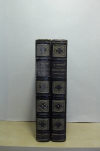 THIERS (Adolphe). Histoire de la Révolution française. Paris, Furne et Cie, 1865 ; 2 vol. in-4, demi-chagrin aubergine, dos à nerfs plats ornés de motifs dorés, [Rel. de l'époque], très rares rousseurs. Portrait de Thiers en rontispice et...