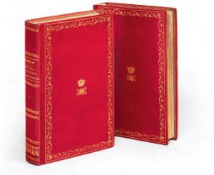centre, dos lisse orné d’un décor à répétition, doublure et gardes de soie moirée verte, tranches dorées, fermoirs (Lejard). Du temps de son exil, la plupart des livres de l’ex-impératrice des Français étaient en demi-reliure, avec des plats de papier. Quelques rousseurs éparses. Dimensions : 200 x 120 mm. Provenances : Marie-Louise duchesse de Parme ; [Un archiduc d’autriche] (Cat. «of valuable books… library of Marie Louise, archduchess of Austria», Londres, 26 juil. 1933, n°119). Sabin, VII-VIII, 25497 ; Brunet, II, 1382 ; olivier, pl. 2654 ; […], Une vie, une collection, Bibliotheca Wittockiana-éditions Faton, 2008, p. 66 (notice sur Marie-Louise). Vignette de titre et 6 figures hors-texte non signées : La Cène, L’Entrée de Jésus-Christ, Il a blasphémé, Le Lavement des pieds, Jésus-Christ souffleté, Résurrection de Jésus-Christ. exemplaire aux armes du duc d’angoulême (1775-1844) qui épousa la fille de Louis XVI, dédicataire de l’ouvrage. celui-ci est luxueusement relié par Lejard, fabricant de portefeuilles, papetier et relieur qui travailla également pour charles X, père du duc. Dimensions : 133 x 80 mm. Exposition : […], Une vie, une collection, Bibliotheca Wittockiana, 10 oct. 2008-28 févr. 2009, éditions Faton, 2008, p. 72, n°58 (notice sur Louis d’artois, duc d’angoulême). Provenances : duc d’angoulême ; Paul-Louis Weiller (Cat. I, 30 nov. 1998, n°76). olivier, 2552, fer n°2.
