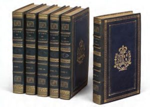 doublure et gardes de tabis bleu céleste, roulette intérieure dorée, tranches dorées (Zezzio, Relieur, Breveté de S.A.S. la Duchesse douairière d’Orléans). Provenance : Marie-Thérèse de France, duchesse d’angoulême. Exposition : culot (P.), Relieurs et reliures décorées en France à l’époque romantique, Bibliotheca Wittockiana, 7 oct. 1995-20 janv. 1996, Bruxelles, n°8, avec reproduction. coulet (H.), Le Roman jusqu’à la Révolution, armand colin, 2009, pp. 417-418 ; culot (P.), Relieurs et reliures décorées en France à l’époque romantique, Bibliotheca Wittockiana, 1995, p. 499 (notice sur Duplanil Fils). éDITIoN orIGINaLe. La duchesse d’orléans, arrière-petite-fille de Louis XIV et de madame de Montespan, mère de Louis-Philippe Ier. Louise Marie adélaïde de Bourbon-Penthièvre (1753-1821) épousa Louis-Philippe d’orléans (1747-1793), dit Philippe- égalité, en 1769. Très vite séparée du duc d’orléans, elle était en complète opposition avec ses idées libérales. elle traversa la révolution entre résidences surveillées et prison, mais survécut à égalité, qui avait voté la mort de Louis XVI et périt sur l’échafaud, le 6 novembre 1793. après avoir vécu en exil en espagne et en Sicile, elle revint en France à la chute de l’empire et s’éteignit en 1821. elle ne vit pas son fils Louis-Philippe accéder au trône. rédigé par son secrétaire particulier e. Delille, son Journal fait l’apologie sans nuance de sa piété et de ses vertus face aux heurts de l’Histoire. Les pages 40 à 44 décrivent la visite en France, en 1782, des parents du tsar alexandre Ier , le grand duc Paul (1754-1801), futur Paul Ier, et son épouse Maria Feodorovna (1759-1828), sous le nom de comte et comtesse du Nord. Lors des fêtes données alors à Sceaux par le duc de Penthièvre, père de Marie-adélaïde de Bourbon, celle-ci noua une affectueuse amitié avec la grande-duchesse. exemplaire relié par Zezzio, relieur de Marie-adélaïde de Bourbon, aux armes d’alexandre Ier, tsar de russie.