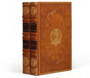 iconographie grecque et romaine, et de plus de 1 200 statues antiques tirées des principaux musées et de diverses collections de l’europe]. [Paris, Victor Texier (de l’Imprimerie nationale), circa 1826-1853], album in-4° oblong, maroquin vert à longs grains, sur les plats, décor de rosaces mosaïquées de maroquin rouge formant encadrement, ornements à froid et dorés, au centre, titre et nom de l’auteur en lettres dorées, non rogné (Rel. chez Ed. Vivet). Provenance : Duchesse de Berry (Cat., Londres, 21 mai 1831, n°601, « olive morocco »). Expositions : […], Une vie, une collection, Bibliotheca Wittockiana, 10 oct. 2008-28 févr. 2009, éditions Faton, 2008, p.80, n°65 (notice sur la duchesse de Berry, avec reproduction) ; culot (P.), Relieurs et reliures décorées en France à l’époque romantique, Bibliotheca Wittockiana, 7 oct. 1995-20 janv. 1996, Bruxelles, n°46, avec reproduction. culot (P.), Relieurs et reliures décorées en France à l’époque romantique, Bibliotheca Wittockiana, 1995, pp. 548-549 et 552-553 (notice sur rené et alphonse Simier) ; […], Entre cour et jardin, Marie-Caroline, duchesse de Berry, Sceaux, 2007, pp. 86-96 et 203-206. recueil de 110 planches (numérotées de 1 à 107, certaines à deux figures) extraites du Musée de sculpture, gravées par Texier, Giboy, reveil,..., Normand père et Thierry d’après les dessins de Lemaitre, Fremy, Laitié, Féron, civeton, Bury... Dessinateur et archéologue, le comte de clarac (1777-1847), après avoir été le précepteur des enfants Murat, participa à une mission scientifique au Brésil, en 1816, puis fut à son retour nommé conservateur des antiques au musée du Louvre. Il s’attacha dès lors à l’établissement du catalogue des sculptures et décors sculptés du Louvre, des Tuileries et du Musée royal. L’entreprise, considérable, se poursuivit sur presque trois décennies, et fut achevée après la mort du comte, d’après ses notes, par le graveur Victor Texier (1777-1864). Imposante reliure mosaïquée, d’un beau format, réalisée par ed.Vivet, praticien né à Dresde, qui exerça à Paris entre 1820 et 1850.