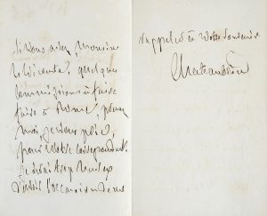 « J'ai déjà eu l'honneur monsieur le Vicomte de recommander M. . à vos bontés. Il vous remettra ce billet pour solliciter de nouveau votre bienveillance. Si vous avez, monsieur le Vicomte, quelques commissions à faire faire à ., prenez moi, je vous prie, pour votre correspondant. Je serai trop heureux d'avoir l'occasion de me rappeler à votre souvenir. Chateaubriand ».