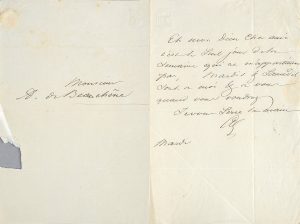 « Eh mon dieu cher ami, c'est le seul jour de la semaine qui ne m'appartienne pas, mardis & samedis sont à moi & à vous quand vous voudrez. Je vous serre la main. Al »