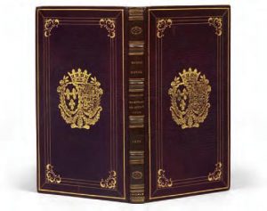 longs, plats ornés d’une grande grecque dorée sertie d’un double filet, au centre, chiffre couronné [fpo] encadré de branches de chêne et d’olivier, l’ensemble frappé à l’or et serti d’une roulette dorée, dos lisse richement orné, doublure et gardes de tabis bleu céleste, roulette intérieure dorée, tranches dorées (reliure du xixe siècle). en mars 1838, le Musée royal, dénommé ainsi après le retour des Bourbons, reçoit les quelque 2 031 œuvres sélectionnées pour être exposées. ce catalogue en donne les descriptions succinctes et l’adresse de leur créateur. on y apprend que Pradier y expose deux sculptures, Viollet-le-Duc, 4 dessins d’architectures italiennes… quant à eugène Delacroix, 17 rue des Marais-Saint-Germain, 5 de ses tableaux sont présentés, parmi lesquels Médée furieuse, qui sera acquis par l’état. Dans le numéro de La Presse du 22 mars 1838, Théophile Gautier rendit compte de ce salon, faisant un vif éloge des œuvres de Delacroix. c’est, entre autres, la lecture de cet article qui donna à Baudelaire « ses premières idées sur Delacroix », ainsi qu’il l’écrivit au colonel aupick en juillet de la même année. exemplaire relié par Ginain aux armes de la duchesse de Berry (1798-1870). amie des arts et mécène avisée, à l’instar de son époux, le duc de Berry, Marie-caroline de Bourbon-Siciles agrémenta ses nombreuses résidences d’œuvres d’art choisies avec soin. aussi n’y a-t-il rien d’étonnant à ce que sa bibliothèque ait compté ces catalogues des Salons parmi les nombreux ouvrages qui y étaient dédiés aux arts, souvent habillés de reliures de grande qualité. relieur et doreur, actif à Paris entre les années 1821 et 1843, Ginain fut relieur du roi et du prince de Joinville. Il travailla pour l’aristocratie aussi bien que pour de nombreux bibliophiles. Dimensions : 175 x 103 mm. Provenances : Duchesse de Berry ; J.-J. M [atheron] (Cat., 10 Octobre 1980, n°261). Expositions : […], Une vie, une collection, Bibliotheca Wittockiana, 10 oct. 2008-28 févr. 2009, éditions Faton, 2008, p. 80 (notice sur la duchesse de Berry, avec reproduction) ; culot (P.), Relieurs et reliures décorées en France à l’époque romantique, Bibliotheca Wittockiana, 7 oct. 1995-20 janv. 1996, Bruxelles, n°38, avec reproduction. Hamrick (L. c.), « Être artiste en 1838 », dans Romantisme, 1986, vol. 16, n°54, pp. 78-88 ; […], Entre cour et jardin, Marie-Caroline, duchesse de Berry, Sceaux, 2007, pp. 77-96 ; culot (P.), Relieurs et reliures décorées en France à l’époque romantique, Bibliotheca Wittockiana, 1995, p. 510 (notice sur Ginain). Premier volume de la collection des auteurs classiques français et latins, éditée par François-ambroise Didot (1730-1804). en 1783, François-ambroise Didot souhaita entreprendre la publication de classiques français et latins « exécutés avec luxe et correction » et demanda à Louis XVI la permission de faire inscrire au titre de chacun « Imprimé par ordre du roi pour l’éducation du Dauphin ». D’abord édités en trois formats, ces classiques, dont l’édition fut poursuivie par Pierre, l’aîné des fils de François, au seul format in-4°, parurent jusqu’en 1794. La collection compte 32 titres, qui furent tirés à 200 puis à 250 exemplaires chacun. après 1788, ils seront imprimés avec le caractère créé par Firmin Didot, alors que celui-ci l’est avec « les beaux caractères gravés par Vafflard sous la direction de F.-a. Didot ». consacré à une œuvre inspirée de la légende historique grecque, remise en faveur par l’archéologie, ce premier volume de la série comporte en tête une dédicace de l’éditeur adressée au roi. édition limitée à 200 exemplaires « sur papier-vélin grand-raisin de France, de la fabrique de Matthieu Johannot, d’annonai (sic) en Vivarais ». exemplaire relié au chiffre de Ferdinand-Philippe d’orléans (1810-1842), duc d’orléans et prince royal de France. Fils aîné du roi Louis-Philippe, Ferdinand-Philippe d’orléans, après 1830, fut étroitement associé au gouvernement de son père, et prit part à la conquête de l’algérie. Il y acquit un grand prestige militaire. cependant, prince lettré et amateur d’art, celui qui avait été le brillant condisciple et l’ami d’alfred de Musset, au collège Henri-IV, rassembla également une riche bibliothèque et une collection d’œuvres de la Haute époque et de céramiques parmi lesquelles des majoliques et des créations de Bernard Palissy. enfin, mécène, il commanda ou posséda des œuvres des peintres de son temps, tels Delacroix, Ingres, Delaroche, ou encore de l’école de Barbizon, comme corot ou Théodore rousseau. Mors supérieur légèrement épidermé en pied. Dimensions : 290 x 227 mm. Provenances : Ferdinand-Philippe d’orléans (1810-1842), duc d’orléans ; a. W. clifford, avec son ex-libris ; Dick Lyons - avec ses habituelles annotations au crayon noir - libraire dans une charmante maison située au cœur de Londres, dont Mme de rothschild appréciait les visites. Exposition : culot (P.), Relieurs et reliures décorées en France à l’époque romantique, Bibliotheca Wittockiana, 7 oct. 1995-20 janv. 1996, Bruxelles, n°33, avec reproduction. Jammes (a.), Les Didot, Paris, 1998, p. 10, n°25 ; olivier, pl. 2580, fer n°6.