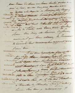 « Si . bien loin de vous avoir oublié monsieur ni vous ni vos beaux vers. Je ne sais où ni comment j'ai pu vous rencontrer sans vous reconnaitre accusez en mes yeux et mon bon souvenir. Je viens de recevoir et de lire une partie du volume que vous avez bien voulu m'écrire c'est une consolation bien vive pour moi d'entendre de pareils accents. ils sont plein d'un retentissement d'honneur de fidélité généreuse que l'âme des poètes doit conserver. le passé n'est pas mort pour vous, vous voudriez le ressusciter ou du moins vous rendez à sa mémoire l'hommage qui vous appartient. J'ai comme poète les mêmes sentiments a peu près que vous. Comme homme du jour et de l'avenir politique j'en ai peut être quelques autres. Je crois à la providence humaine et divine sous toutes les formes et sous tous les drapeaux, je crois qu'il y a un temps pour donner des larmes aux hommes tombés qu'on a aimés, et un temps pour monter avec une nation à la conquête des principes plus larges et de destinés nouvelles. Je crois que l'avenir bien compris peut seul nous rendre le Passé. mais tout cela est de la politique et l'on ne pense avec vous qu'à de la Poésie. Vous devez être heureux du sacre universel que vous obtenez. les Journaux n'avaient tous [.] vos beaux vers. Je ne vous réponds pas dans cette langue [.] parce que je ne l'ai pas parlée depuis deux douloureuses années retiré maintenant dans la solitude de [.] y trouver quelques consolations dans un tems d'émotion d'esprit [.] Je n'irai à Paris que le plus tard [.] Pour vous y retrouver ? Si nous ne [.] pas par la à nous voir nous allons au même but, et à supposer que nous ne nous entendions pas en Politique du moment nous nous en tournant Poème et en sentiments Purs et généreux. Ecrivez encore beaucoup. Voyagez surtout, lisez les forts poëtes des autres Pays, vous reviendrez plus nerveux encore à une langue qui a besoin d'être touché d'un [.] plus ferme que nous ne l'avons fait [.] remerciements ».
