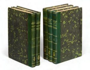 […]. Mémoires secrets sur la vie privée, politique et littéraire de Lucien Buonaparte, prince de canino… Londres, Henri Colburn, 1818, 2 vol. in-8°, demi-basane maroquinée verte, dos lisses ornés, armes en pied, tranches mouchetées (reliure
