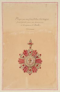BEAUCHESNE Alcide, Vicomte de (1804-1873).Plaque de l'empereur d'Oude. Aquarelle. H. : 19 cm - L. : 29 cm.