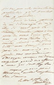 « J'ai besoin de vous . bien vite monsieur, de l'aimable intervention que vous avez apporté dans la réussite de mon affaire le bon . m'en a prévenue hier au moment où elle venait d'être décidé au conseil du Roi, comme il est douteux que je voye le ministre qui a autre chose à faire que recevoir des . voulez-vous vous charger de ceux que je voudrais lui faire pour la manière dont il a présenté ma demande. [.] Vous m'avez promis de me dédommager de n'y être si malgré la semaine dernière pour vous forcer [.] ».