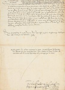 Intéressante lettre concernant la situation dans la ville de Verdun. : « Sire. Trouvant ce porteur, je nay voulu faillir faire entendre à Votre Majesté comme toutes choses se passent en ce Gouvernement, qui sont la grâce à Dieu jusques icy paisibles, et n'avons faultes si ce n'est d'argent ; à quoy je supplie très humblement Vostre majesté de y voulloir pourvoir, car les soldats meurent de fain, et je n'y saurois plus faire satisfaire aux gens d'Eglise ny bourgeois, et si, ne trouve personne qui me veuille plus prester uny denier ; Nous sommes icy en grande alarme des Meistres, lesquels, comme je pense, sont encor bien loing ; mais ainsi comme l'on m'a fait entendre, le Camp de Monseigneur le Prince de Condé nous vient venir ; s'il y vient, J'espere qu'avec l'aide de Dieu, ils seront bien battus, et nous les renvoyerons au . Pour le moins, nous n'avons point faulte de bon cœur et voulonté de satisfaire au Voulloir et Commandements de Vostre Majesté ; en attendant . Vostre Voulloir et Commandement,Sire, Je supplieray le Créateur donner à Nostre Majesté, en santé, très heureuse et longue Vie. De Verdun ce 4 Décembre 1569. Vostre très humble et très obéissant. Subject et Serviteur. De Viene Au Roy ».