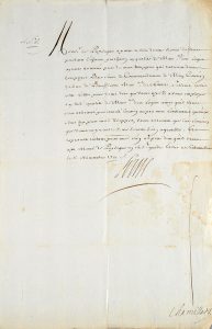 « Mons. de Puységur ayant résolu de me servir . pendant l'hyver prochain en qualité de maréchal des logis en mon armée près de mes troupes qui resteront dans . sous le commandement de Mon Cousin le duc de Boufflers maréchal de France. Je vous escris cette lettre pour vous dire que vous ayez a vous employez en ladite qualité de maréchal des logis ainsy qu'il vous sera ordonné par mon Cousin ou par mes lieutenants généraux pour luy près mes dites troupes. Vous assurant que les services que vous m'y rendrez me seront bien agréables. [.] Je prie Dieu qu'il vous aye Mons. de Puységur en Sa Ste garde. Escrit à Fontainebleau le 8 novembre 1701. LOUIS ».