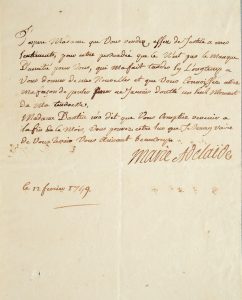 MARIE-ADELAIDE, princesse de France, dite Madame Adélaïde (1732-1800). Lettre manuscrite signée Marie Adélaïde, le 12 février 1749, 1 page, in-8°.