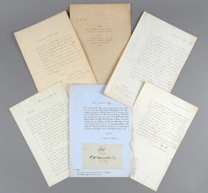annonçant la mort de la princesse Sophie » ; « La lettre envoyée d'Oberkirche, le 8 février 1792, signée par le prince Louis-Joseph de Bourbon, adressée à la Marquise des Montiers », « La lettre envoyée de Vérone, le 30 mai 1794, signée par le prince Louis-Stanislas-Xavier de Bourbon (futur Louis XVIII), adressée au Comte de St des Montiers », « La lettre du sieur Callet directeur de l'école des Elevés de la marine à Vannes, le 15 juillet 1791 concernant l'ouvrage d'une table logarithmique faite par madame Elisabeth », 7 pages manuscrites, infolio.