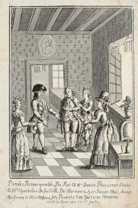 ECOLE français de la fin du XVIIIe siècle. Parole remarquable du roi à Mr. Sauce, procureur syndic et à Mr. Chandelier de la ville de Varennes. Gravure anonyme, représentant une caricature populaire de cette rencontre. H. : 17 cm - L. : 11 cm.