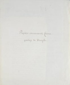 [GARDIENS DE LA PRISON DU TEMPLE]. LASNE Etienne (1756-1841). Ensemble de cinq documents et correspondances relatives à Lasne. Comprenant : une L.A.S. Lasne, le 20 août 1830, adressée au Vicomte de Beauchesne ; deux notes biographiques sur Lasne,...