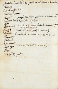 liste des relais de poste de ce voyage où la princesse fit escale entre le 19 décembre et le 26 décembre 1795, 1 page, in-8. Traces d'humidité et de pliures.