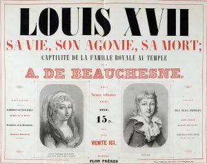 BEAUCHESNE Alcide Vicomte de (1804-1876). Louis XVII, sa vie, son agonie, sa mort ; captivité de la famille royale au temple, affiche promotionnelle publiée par la Librairie Plon, à l'occasion de la sortie de son livre en 1853, ornée de deux...
