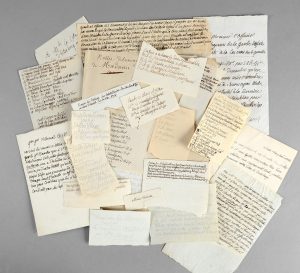 *. MARIE-THERESE, princesse de France, Madame Royale, duchesse d'Angoulême (1778-1851). Important ensemble d'environ 45 notes manuscrites et de brouillons de lettres rédigés par la princesse à divers moments de sa vie et conservés par le Baron...