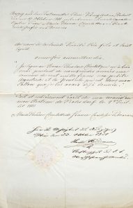 document un texte en allemand avec signature, datée du 23 octobre 1851, et un cachet sous papier en cire rouge aux armes des Habsbourg. Bon état.