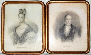 ECOLE français du XIXe siècle. Naissance du duc de Bordeaux. Gravure signée J. Marchand, le représentant au pied d'un buste de son père entouré du manteau royal, avec sa sœur à ses cotés, conservée sous verre dans un encadrement ancien en...
