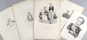 HENRI, duc de Bordeaux (1820-1883). Ensemble de cinq gravures et lithographies anciennes, représentant le jeune duc de Bordeaux à divers moments de sa vie. Usures, en l'état. Formats divers.