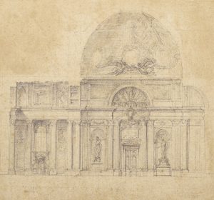 Attribué à Jean-Baptiste Bouchardon (1667-1722) Projet architectural, coupe d’une église à coupole Pierre noire. 26,5 x 28,5 cm