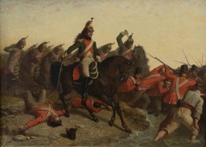 Augustin Feyen-Perrin (1826-1888) Charge de cavalerie Scène des guerres d’Italie Deux huiles sur toile. 58 x 81 cm Signées et datées 1863.