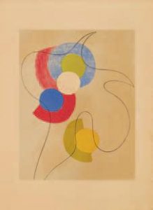 10 lithographies originales en couleurs par J. Arp (1886-1966), S. delaunay (1885-1979), A. Magnelli (1888-1971) et S. taeuber-Arp (1889-1943). Habituelles rousseurs. édition limitée à 165 exemplaires, tous sur papier vélin d’Arches et signés par les artistes (cachet pour S. taeuber- Arp). dimensions : 380 x 285 mm.
