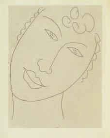 eau-forte originale sur chine d’Henri Matisse (1869-1954), 33 photo-lithos originales, 70 dessins originaux gravés sur bois par théo Schmied et une couverture spécialement dessinée pour ce livre. Matisse avait préparé une série de portraits féminins au crayon gras, prêts à être reportés sur la pierre lithographique, mais un incident les endommagea et Matisse ne parvint pas à les refaire. « c’est louis Aragon, alors très lié avec Matisse, qui va le décider […] à réaliser pour la Bibliothèque française qu’il dirige, une édition où les poèmes s’apparentent aux photo-lithos faites d’après les photographies des premières illustrations, et qui se trouvent légèrement réduites. Matisse dessine alors des lettrines, divers ornements et culs-de-lampe, compose la couverture et grave l’eau-forte placée en frontispice pour enrichir cet ouvrage au long et difficile aboutissement. » (c. duthuit - F. Garnaud, Henri Matisse, p. 131). édition limitée à 320 exemplaires (n° 46), tous sur papier de rives et signés par Henri Matisse. dimensions : 286 x 230 mm. c. duthuit - F. Garnaud, Henri Matisse, n° 19, p. 128.