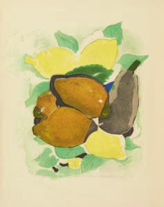 texte remanié et augmenté formant la troisième version de Lettera amorosa. l’ordre des fragments a été modifié, onze d’entre eux ont été corrigés, neuf ajoutés, dont huit inédits. Précédé par Poèmes, Lettera amorosa est l’un des grands livres illustrés dans l’œuvre de rené char. Initié en 1958, ce n’est qu’après l’intervention de Pierre-André Benoit, et à la demande de Braque, que l’ouvrage a pu être imprimé puis présenté fin avril 1963. 27 lithographies originales en couleurs de G. Braque (1882-1963). la plupart d’entre elles empruntent leurs sujets à des gouaches sur papier dont Braque disposait. l’un des 20 premiers exemplaires, contenant : - l’une des 20 suites des 27 lithographies sur papier du Japon misumi, conservée dans une chemise ornée d’une lithographie originale signée de Braque, justifiée 16/20. - l’une des 50 suites des 27 lithographies sur papier du Japon nacré, conservée dans une chemise ornée d’une lithographie originale signée de Braque, justifiée 16/50. l’exemplaire est enrichi : - du catalogue de la Bibliothèque Jacques doucet, Georges Braque, René Char, Paris, 1963, in-4°, broché. - du fascicule oblong « À propos de l’exposition à la Bibliothèque littéraire Jacques doucet, à Paris, du livre de rené char, Lettera amorosa… », imprimé sur papier bleu. Quelques légères traces de report en regard des lithographies du volume de texte, comme très souvent. édition limitée à 200 exemplaires, tous sur papier de rives. dimensions : 320 x 252 mm. P.-A. Benoit, Bibliographie des œuvres de René Char, de 1928 à 1963, 50  ; […]. L’Herne, René Char, 183b  ; A. coron, Bibliothèque nationale, René Char, n° 196, p. 133 ; d. vallier, Braque, l’œuvre gravé, n° 187, p. 267 ; Pascal Fulacher, De l’incunable au livre d’artiste, Musée des lettres et manuscrits, pp. 232-233.