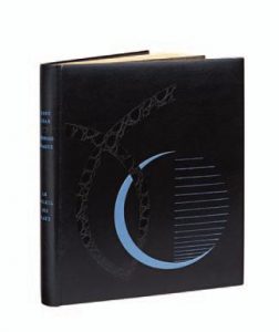 Char (R.) - braque (G.). le Soleil des eaux. Paris, H. Matarasso, 1949, in-4°, box noir, premier plat, décor stylisé de diverses matières figurant un poisson mêlé à un croissant de lune posé sur la mer, dos lisse, tête dorée, non rogné,