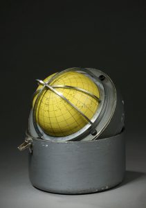 Sphère céleste en latin dans sa boite de transport.