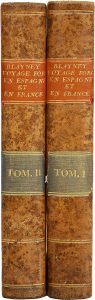 BLAYNEY (Général-major). Relation d’un voyage forcé, en Espagne et en France, dans les années 1810 à 1814. Paris, Arthus Bertrand, 1815, 2 vol. in-8, demi-basane fauve mouchetée à coins, dos lisse orné de filets dorés (reliure de l'époque).