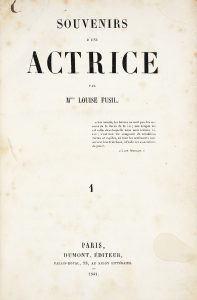 FUSIL (Louise). Souvenirs d’une actrice. Paris, Dumont, 1841, 2 vol. in-8, demi-chagrin gris à grain long, dos lisse orné (reliure moderne).