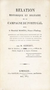 GUINGRET (M). Relation historique et militaire de la campagne de Portugal, sous le maréchal Masséna, prince d'Essling. Limoges, chez Bargeas, mai 1817, in-8, demi-basane fauve, dos lisse orné de filets et de fleurons dorés, tranches marbrées...