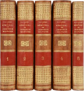 LARREY (D. J.). Mémoires de chirurgie militaire, et campagnes. Paris, Smith, Baillière, 1812-1841, 5 vol. in-8, demi-basane fauve, dos lisse orné, tête dorée (reliure moderne).